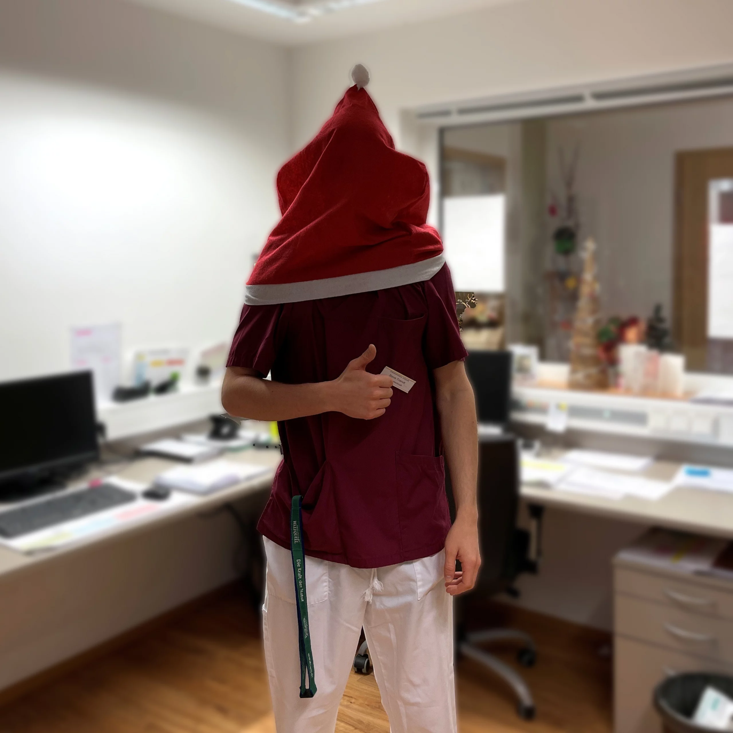 „Klar! Der erste Einsatz ist immer spannend: neue Einrichtung, neue Kolleginnen und Kollegen – und am Anfang kennt man niemanden. Aber ich sage immer: „Wie es in den Wald hineinschallt, so schallt es auch heraus.“ Ich bin ein offener Typ. Wenn du offen auf Menschen zugehst, kommen sie meistens auch offen auf dich zu. So war das auch beim ersten Einsatz – ich bin super reingekommen. Und ich habe sogar noch ein Bild davon. Das war passend zur Weihnachtszeit. Spaß darf auf der Arbeit einfach nicht zu kurz kommen 😉🧑🏻🎄.